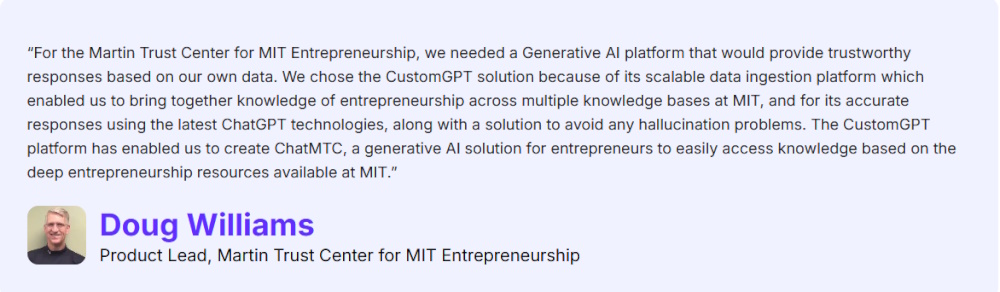 “What I love most is how CustomGPT preserves tone and domain-specific knowledge, making it ideal for customer support, lead generation, or content-rich projects.”
